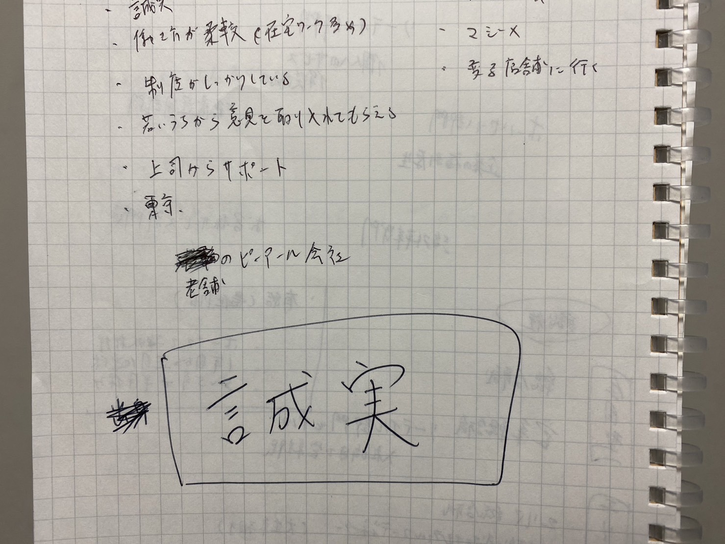 隈元:僕もね、初めてプラップの説明会受けたときのメモを今見返してんけど、めっちゃ大きい文字で「誠実」って書いてあって……。