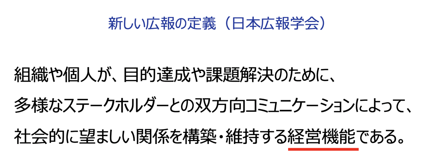 最後に、2023年に日本広報学会が発表した、新しい広報の定義についてお伺いしました。