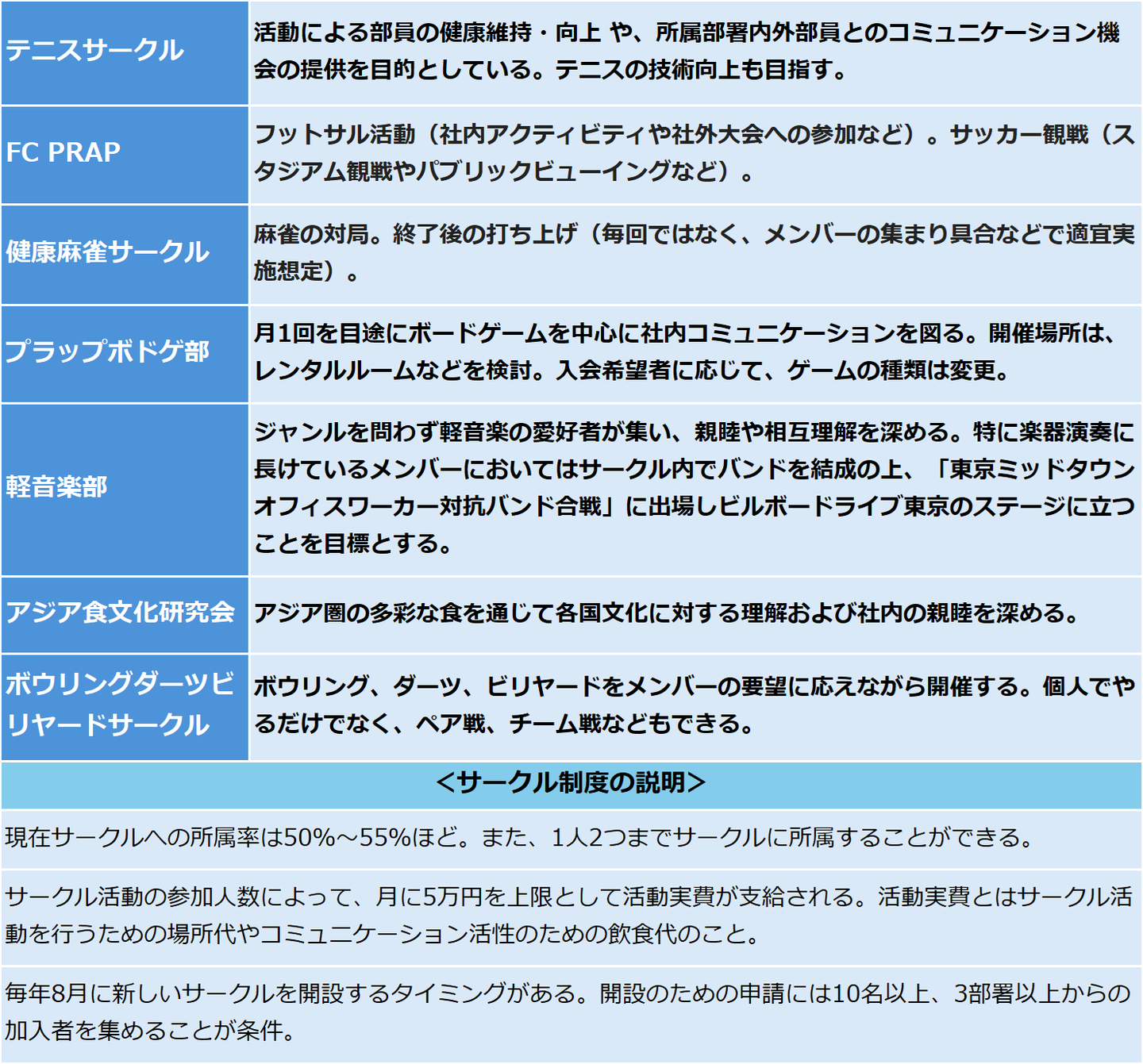 「大人になっても趣味をみんなと共有したい!趣味仲間を増やしたい!」と思っている方へ!なんとプラップジャパンにはサークル制度があります!運動系や音楽系といった馴染みのあるジャンルから、聞き慣れないサークルまで様々!