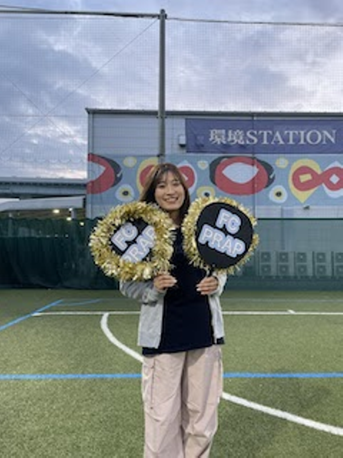 FC PRAPにとって初の公式戦!ここからは、試合前に行ったFC PRAPメンバーである石崎詩織(いしざきしおり)さんへのインタビューの様子をお届けします!