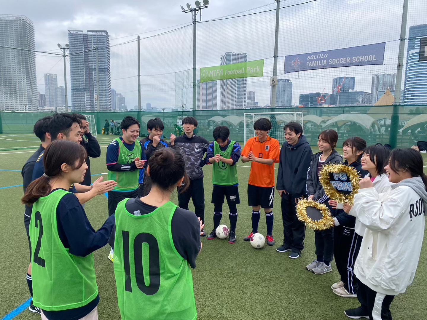 ここまでご紹介してきたフットサルサークル「FC PRAP」は、2023年11月12日に行われた「東京ミッドタウン オフィス対抗フットサル大会」への出場が決まっていました。そこでなんと!私たち内定者も大会を見学させていただくことになったのです!