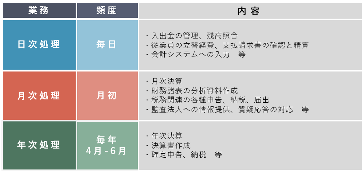 現在は主要小会社の経理を担当しています。大まかな業務の流れとしては以下の通りです。