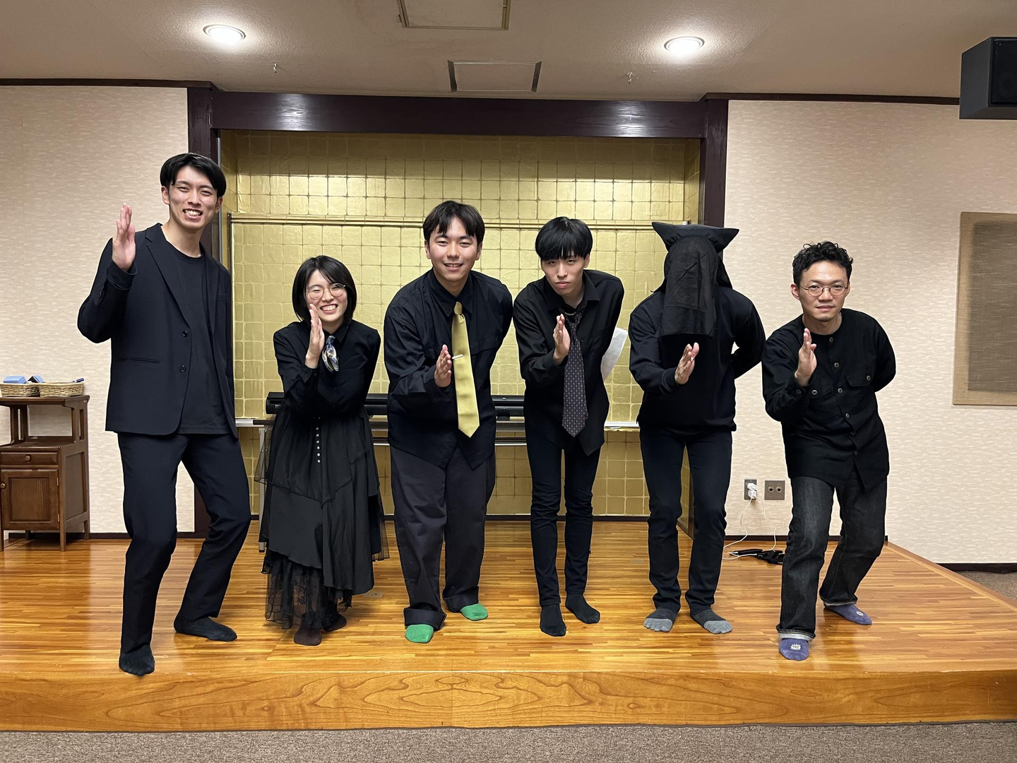集合写真もパチリ。みんな割と浮かれてます。