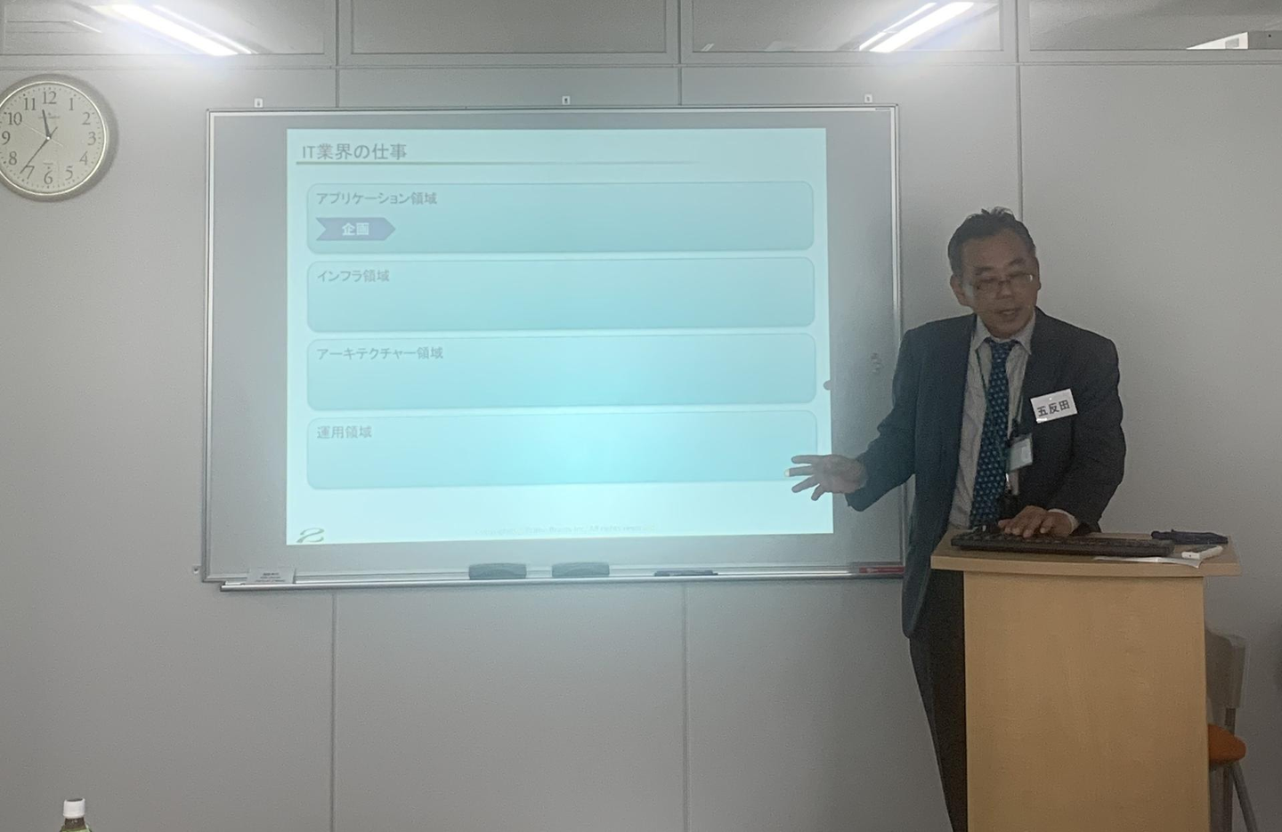 IT業界に長きに渡り身を置く伊賀ですので、数多くのプロジェクトマネジメントを経験されてきました。「大変だったプロジェクトは?」「それをどう乗り越えましたか?」といった学生さんからの質問にも率直に、且つユーモアを交えながら回答をしてくれました。