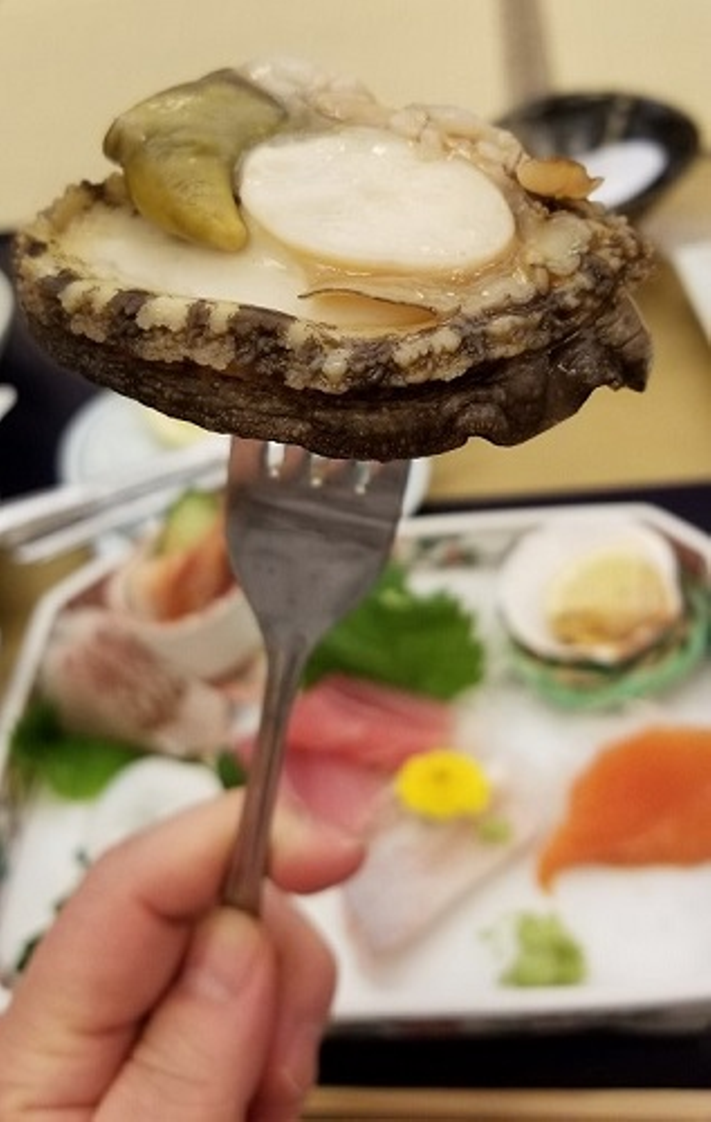 昼食は鴨川名物の「おらが丼」。おらがというのは鴨川の方言で我が家という意味なんだそうです。ゴルフの勝利チームから順番に伊勢海老⇒天ぷら盛り合わせ⇒なめろうメンチカツ⇒のりの天ぷらを追加注文。すごい差ですが、、、値段に関わらずどれも美味しかったです。