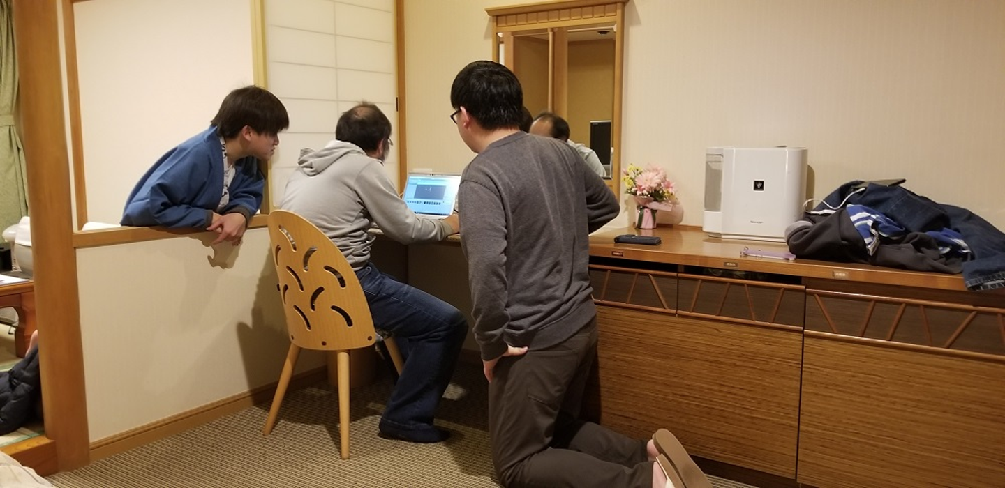 予定は4時間でしたが、先にお話しした通り、2時間押して始まったバッカソン。20時には宴会場で美味しい夕食がスタートするということで、発表の時間にしていた予定時間を企画・開発にあて3時間で行う事に。そして発表は翌朝にすることでなんとか収まりました。