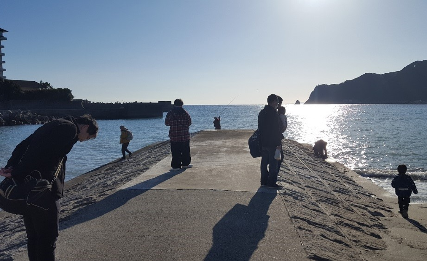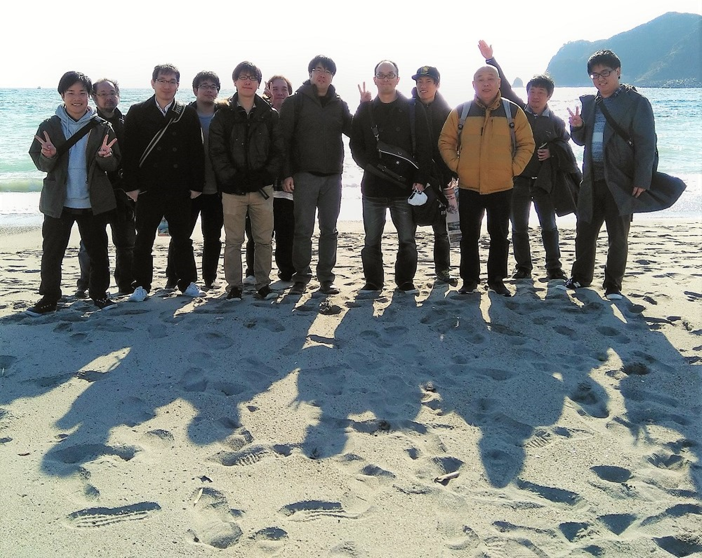 冬の海は寒いですが澄んでいて気持ちいいですよね。記念に集合写真。