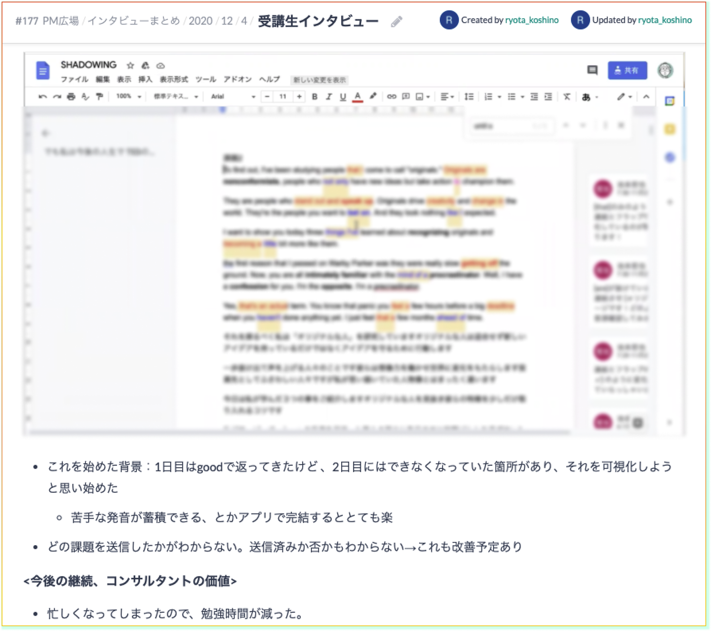まずは、何を作るのか?の前にどんなIssueを解決しに行くのかを探索するところから始めます。その際に仮説を持って、お客様に直接インタビューを行なっていたりします。インタビューはプロダクトマネージャーがお客様にコンタクトして場をセッティングしてデザイナーと一緒に行なっています。インタビュー結果は社内のwikiに記録して関係者に共有できる状態にしています。