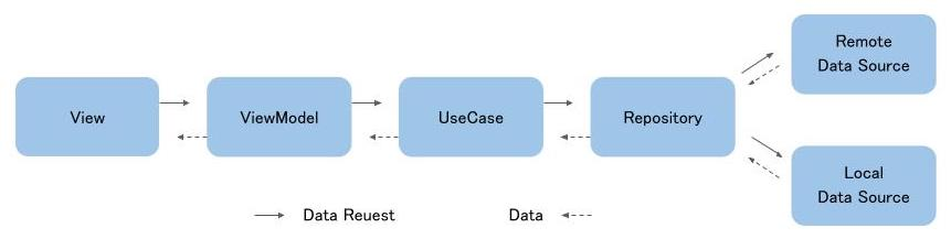 登場するのが、View、ViewModel、UseCase、Repository です。各クラスの依存関係について、簡単に図でまとめてみました。