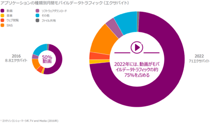 ちなみに・・動画市場は今後も拡大見込みで、2022年には動画がモバイルデータトラフィックの75%を占めるとも言われています。