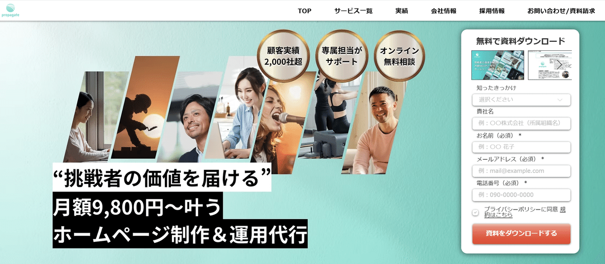 プロパゲートの祖業である“サブスクWEB制作”。制作費を無料にし、月額9,800円~という手の届きやすい価格で、完全オリジナルのホームページを提供しています。これにより、少ない資金であっても、挑戦者たちが自信を持って確実な一歩を踏み出せるようサポートしています。今でこそ「サブスク型WEB制作」は市場に広がりつつありますが、私たちが始めた当初は完全に逆風でした。
