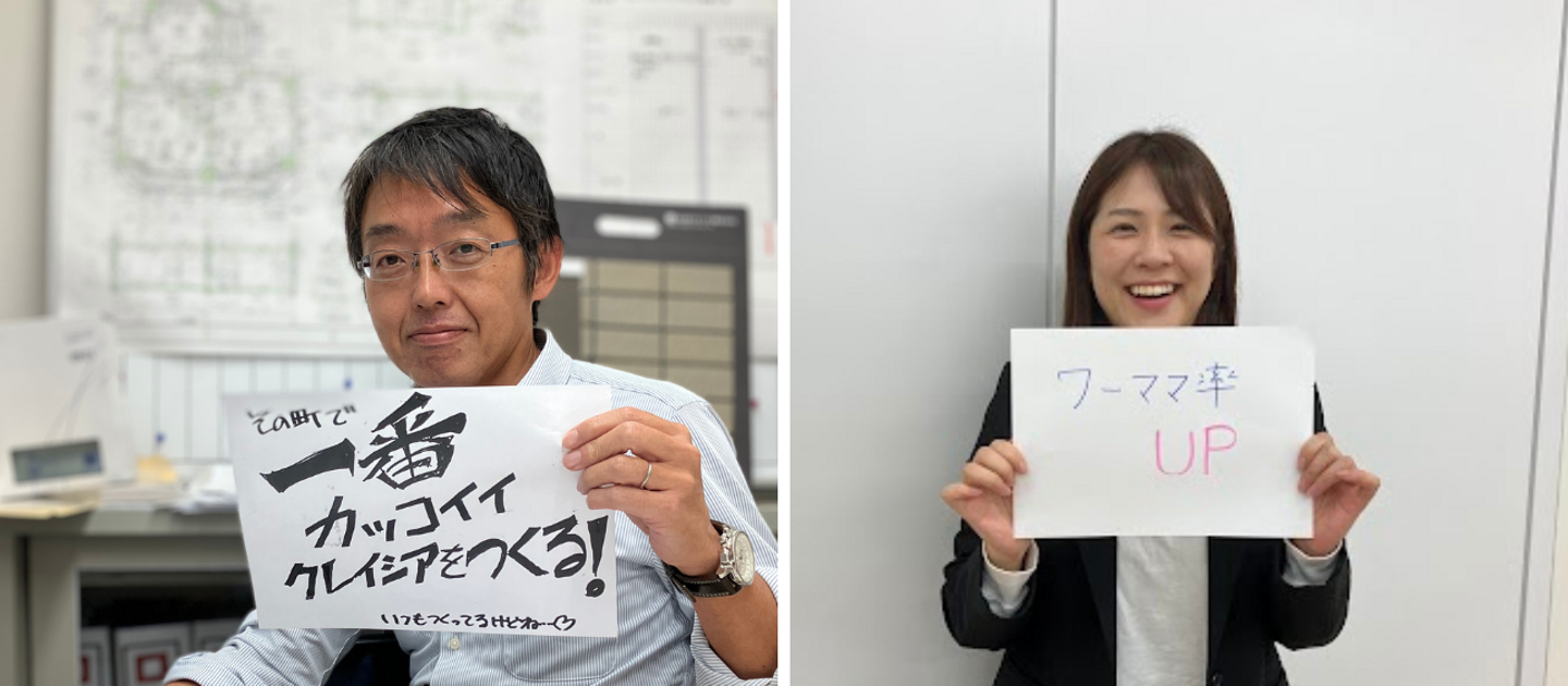 今回の社員総会のテーマである『挑戦』にちなんで、社員の皆さんには事前に「プロパティエージェントで挑戦したいこと」を1人1枚紙に書いていただきました。
