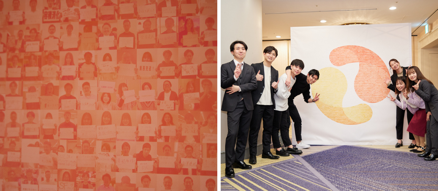 そして、社員全員の写真を集めて、プロパティエージェントのロゴを作成!1枚のモザイクアートを創り上げ、会場に展示いたしました!