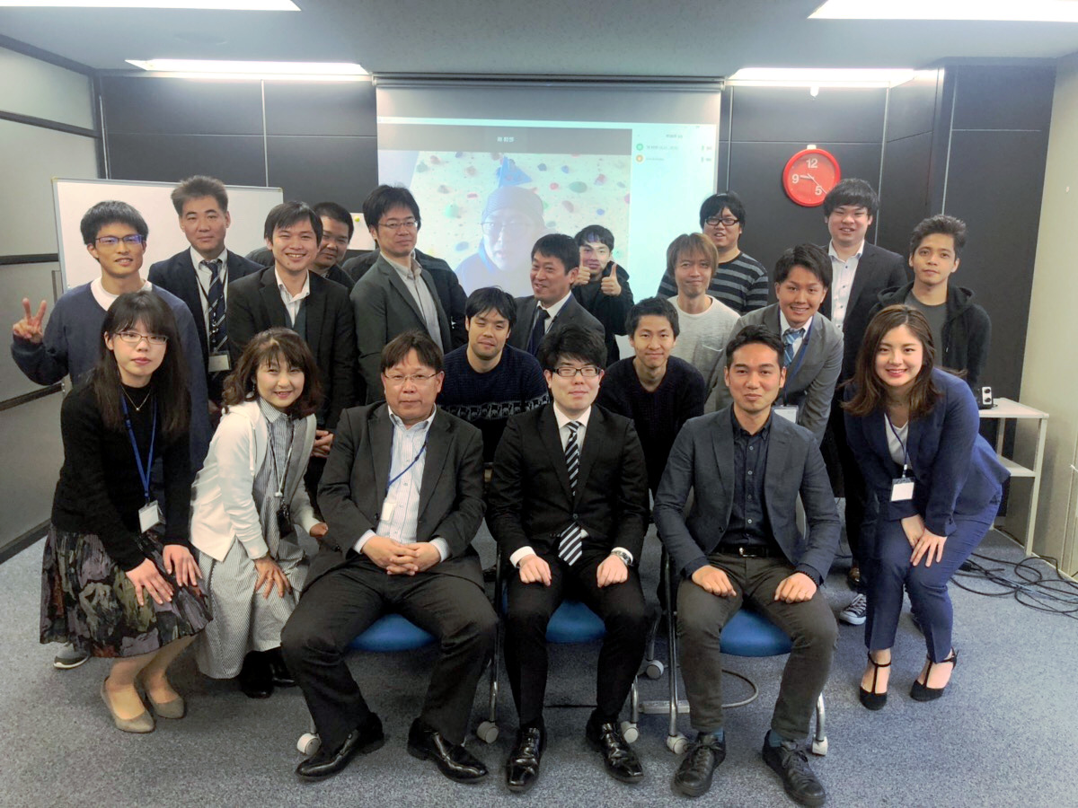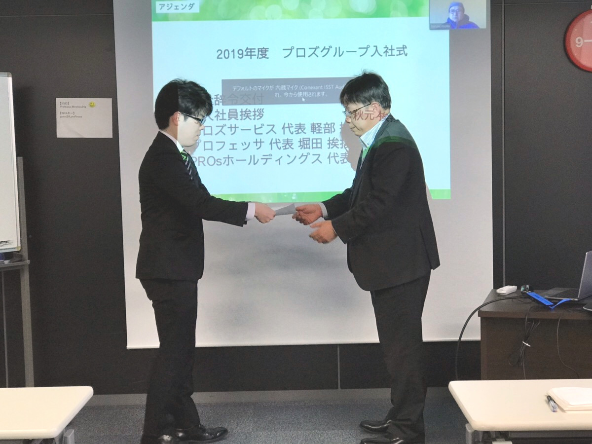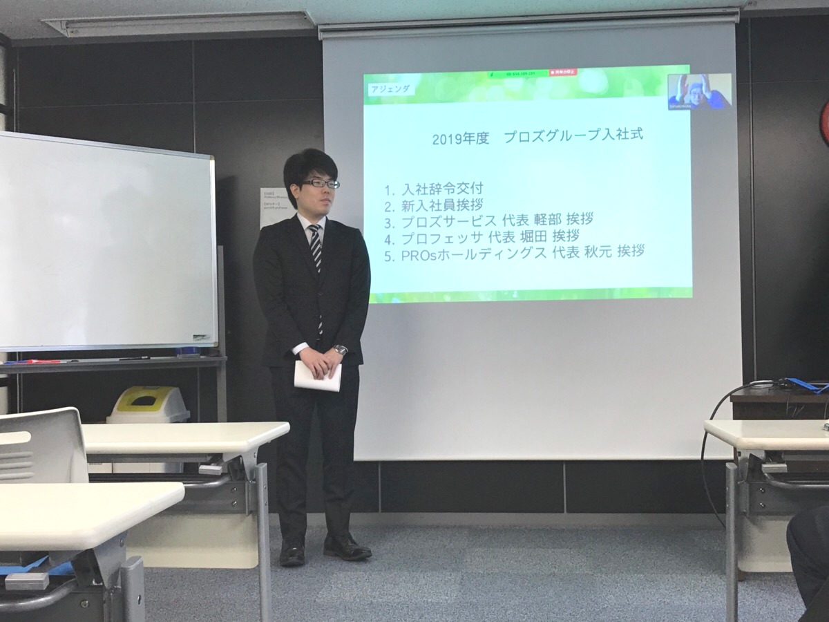 ▲プロズグループ全体で新卒を歓迎しました (創業者は長野県小川村から中継で歓迎)