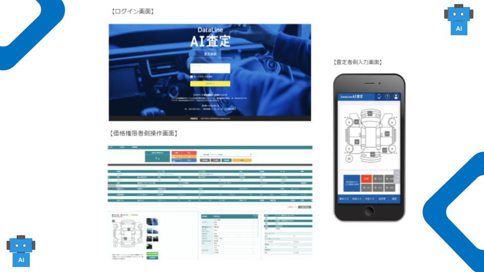 自動車販売店様の課題として、車の査定において人の経験や知識に頼ることしかできず、査定にバラツキが起きてしまうことがありました。この課題を解決できるのがこちらのサービスです。