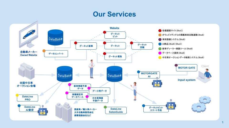 その他にも、車種確定用のデータベース、市場小売価格データベースなどを国産車/輸入車メーカー様、大手自動車販売会社様や損害保険会社様へご提供させていただいております。