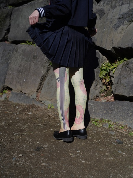 その結果、商品の撮影で有名な写真家を起用する企業まで現れています。例えば、この刀剣タイツの写真はAKB48のグラビアも撮影している青山裕企氏が撮影しています。