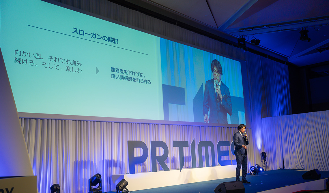 実は以前の社員総会のときに、スローガンの意義について山口さん(社長)と話したことから、PR TIMESの中でもこれを根付かせていきたいなと思い至ったんです。そもそもスローガンって何なのかって考えると、“ビジネスの通期で大事にしたいことを言語化したもの“だと思っているんですよね。