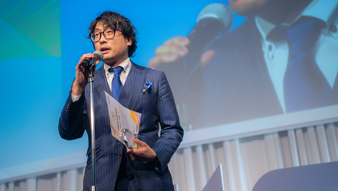 Be the Slogan賞のピッチで自らが変わることで仕事を進めていくことを宣言。受賞後のスピーチでは組織が変わる可能性についても言及しました。