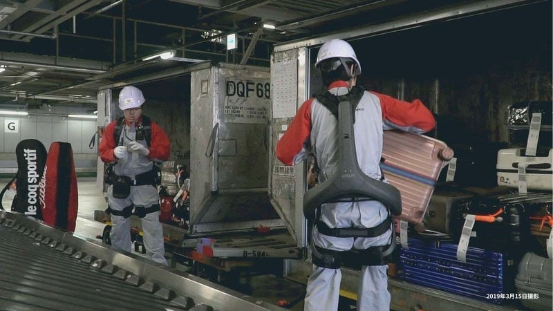 腰の動きをセンサーがとらえ、パワフルなモーターの力で重量物を持ったときにかかる腰部への負担を