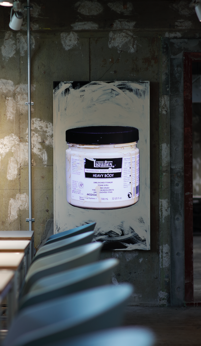 <元々貼られていた壁紙を剥がした後に残った接着剤の白い跡は、あえてそのままに残している。>