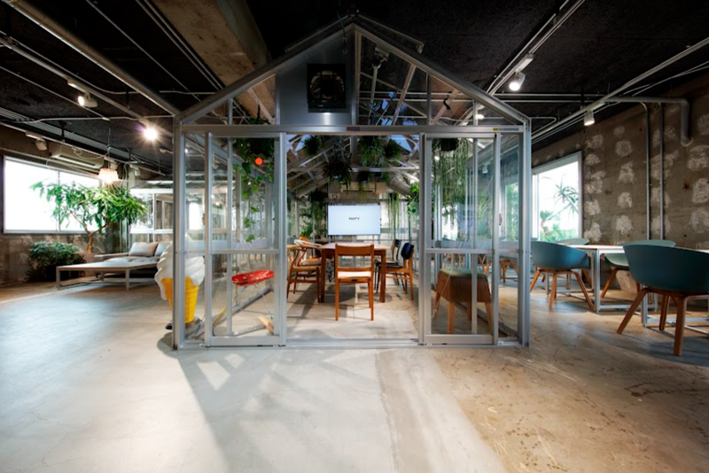 <PARTYの代官山オフィス・TOKOにて会議室として使用されている象徴的なグリーンハウス。>