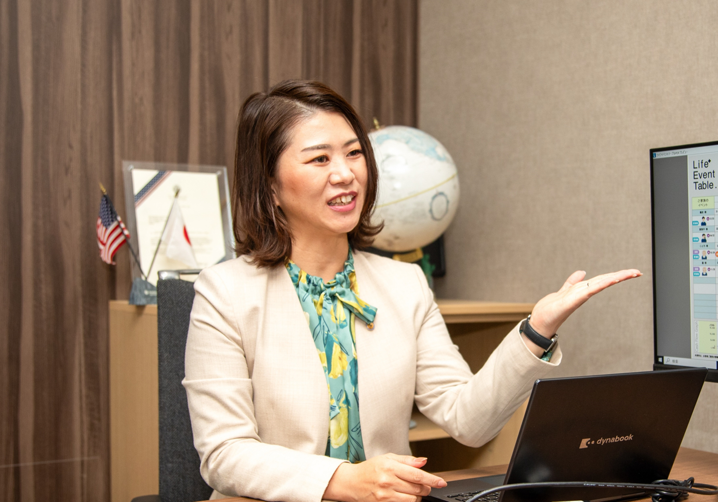 前職時代は“男女”という枠組みに違和感を抱くことがあったので、育児と仕事との両立のサポートや、性別を問わず公平に活躍できる支社づくりの一助になりたいと考えています。
