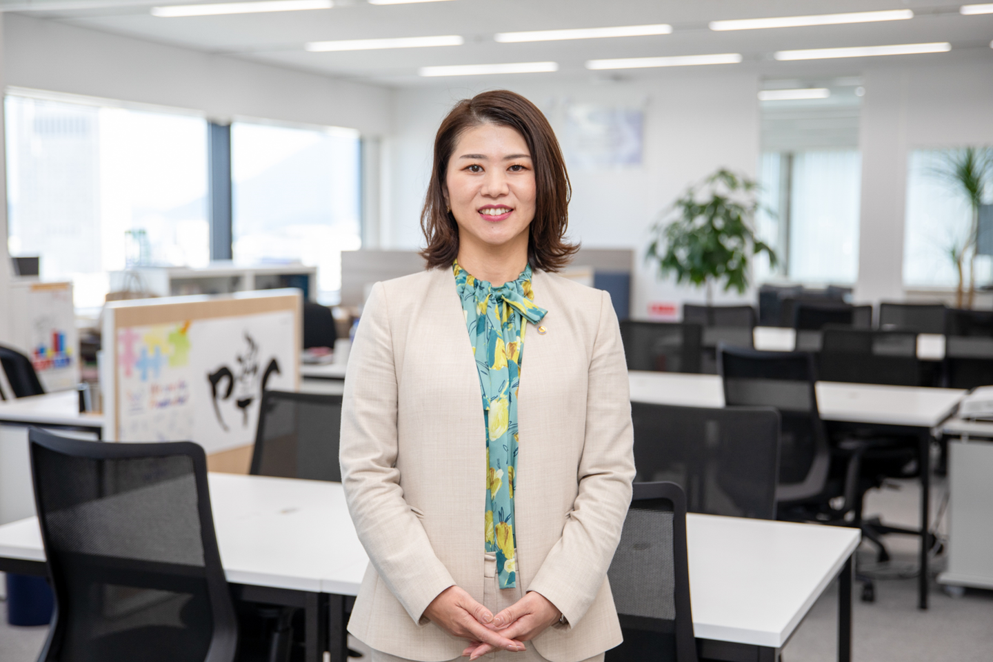 前職時代は“男女”という枠組みに違和感を抱くことがあったので、育児と仕事との両立のサポートや、性別を問わず公平に活躍できる支社づくりの一助になりたいと考えています。