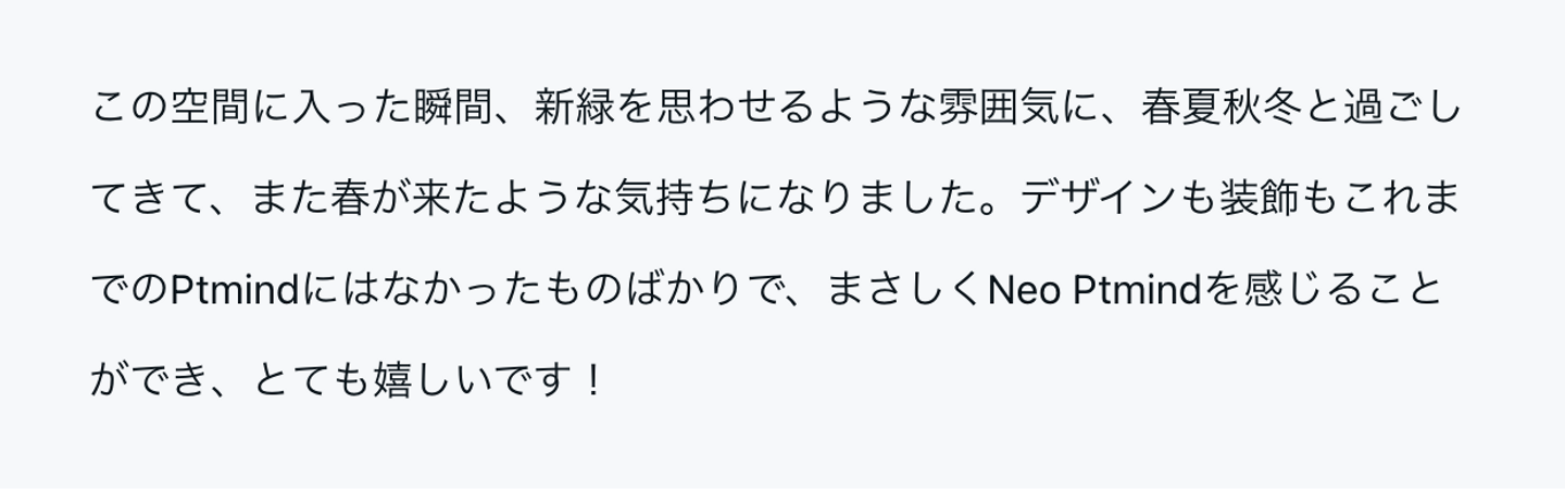 また、オフィスだけでなく、新しいメンバーや、新しい家族が増えたメンバーが多いことや、会社としての新しいビジネスへのチャレンジなどを鑑みて、PtmindとPtminderに日々起きている「新しさ」を感じられる場にしたいと考えていました。