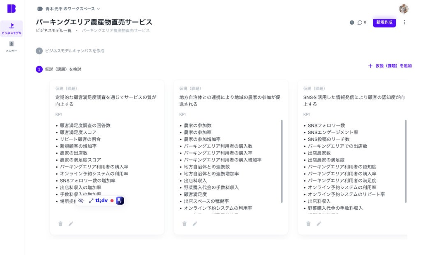 さらに、ビジネスアイデアから仮説(課題)と何を重要業績評価指標(KPI)にしてビジネス課題の実現に向けて取り組むか、提案します。