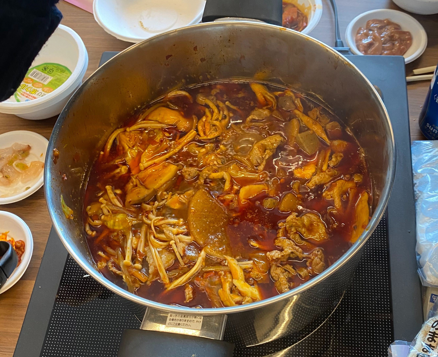 (ちなみに、麺はちゃんと沸騰した別の鍋でほぐしてから、火鍋に合流しました)