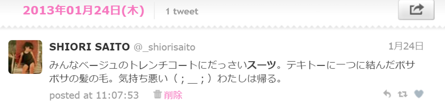 ↑ 最後の「わたしは帰る。」に言いようのないドヤ感を感じる、4年前のツイート。(当時22歳)