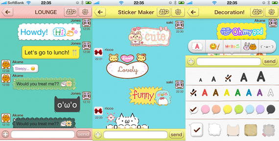 (2011年にローンしたチャットアプリ『LOUNGE』。デコメでの経験を生かしたカラフルなUI/UXが特徴だった。)