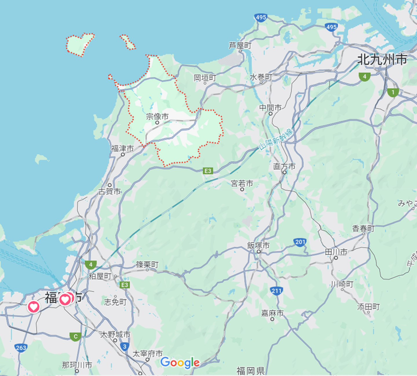 北九州市と福岡市の真ん中に位置する宗像市