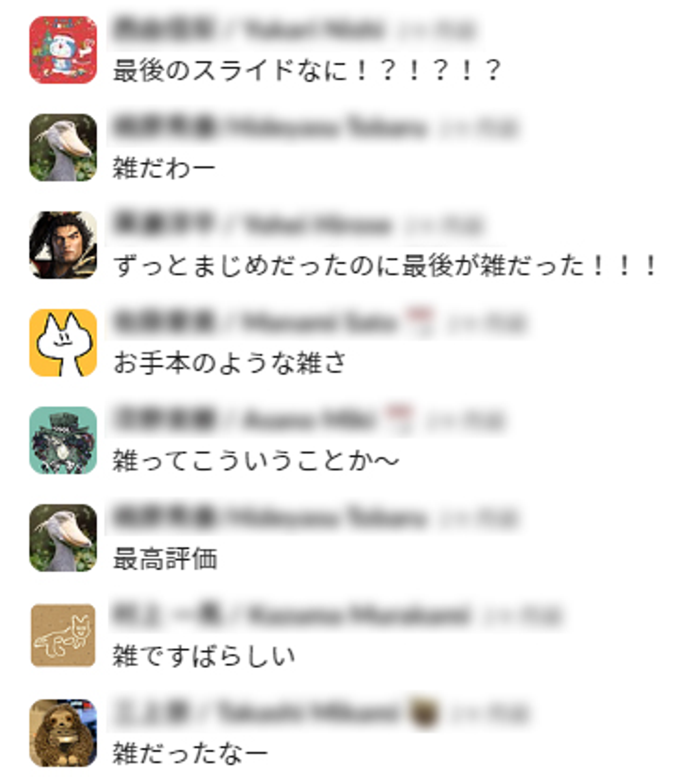 Slackでも「雑」に関する評価コメントが激しく飛び交います。