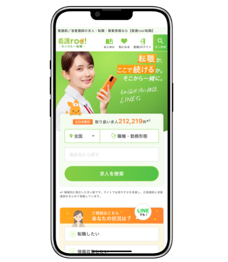 そんな命を預かる大切な仕事に携わる看護師たちがより良く働ける場所と出会えるよう、手助けをしたい。こうした想いのもと、『看護roo!転職』は転職サポートサービスを提供してきました。LINEを使った気軽な転職相談や、求人の紹介、キャリアアドバイザーによるアドバイス提供などを通じて、ひとりひとりの看護師が最良の選択をするお手伝いをしています。