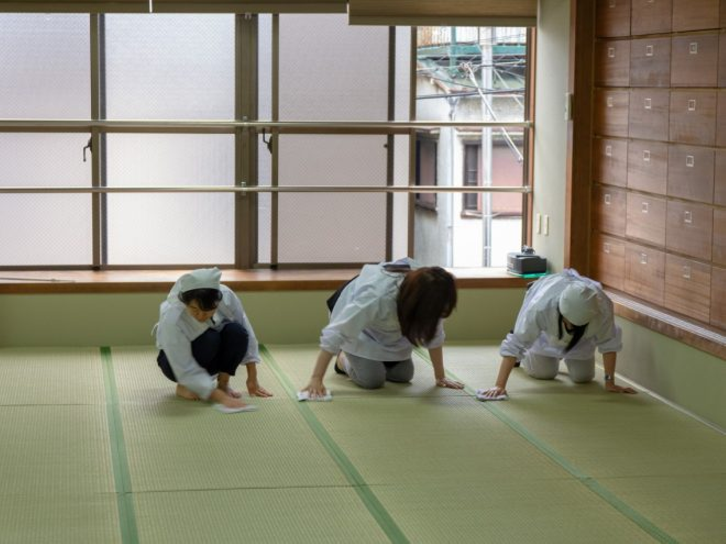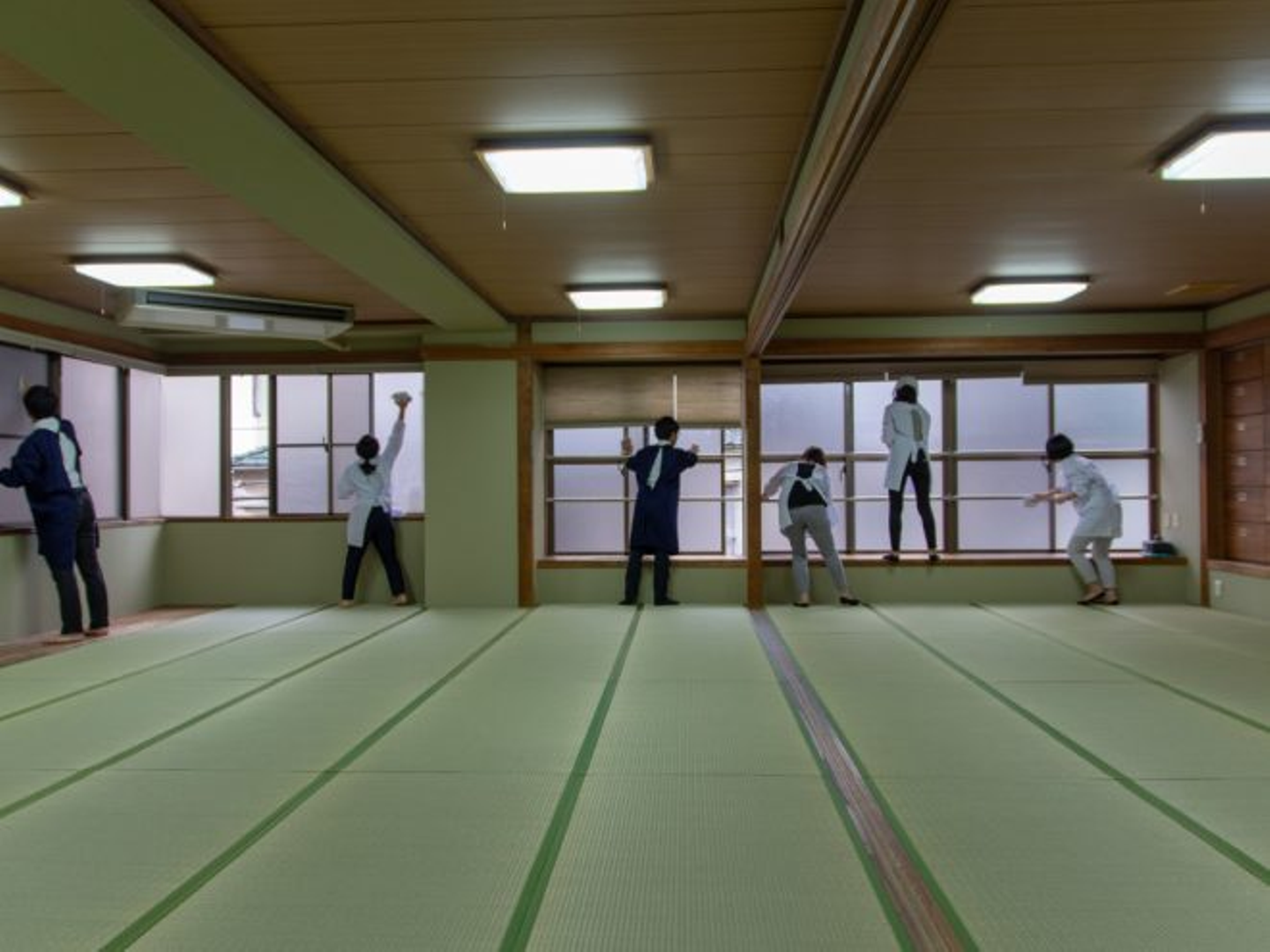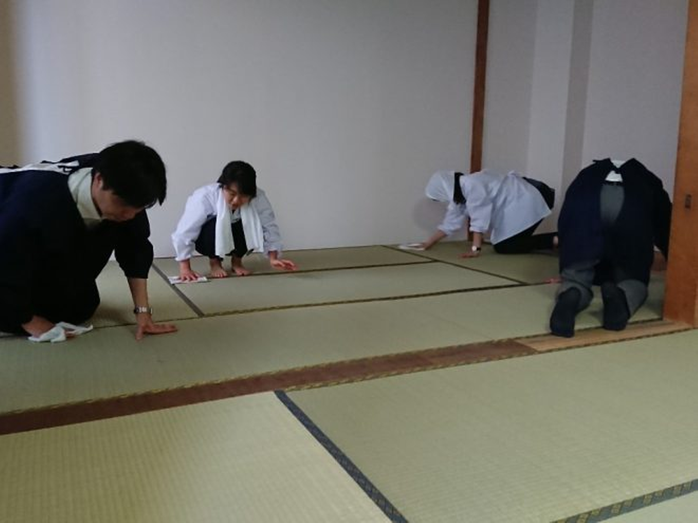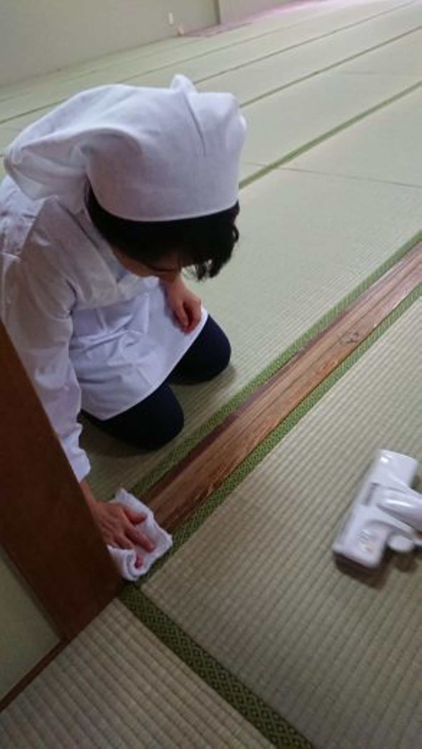 2階の54畳の大広間を掃除機→フローリングワイパー→雑巾(水拭き)→雑巾(乾拭き)と順番に行い、汚れを拭いていきます。