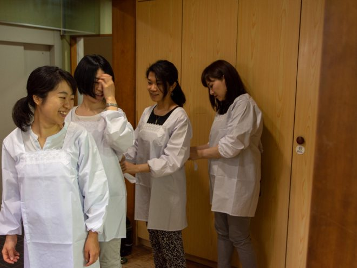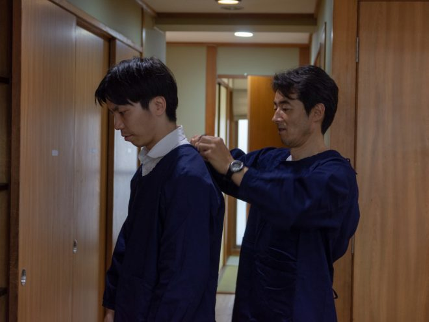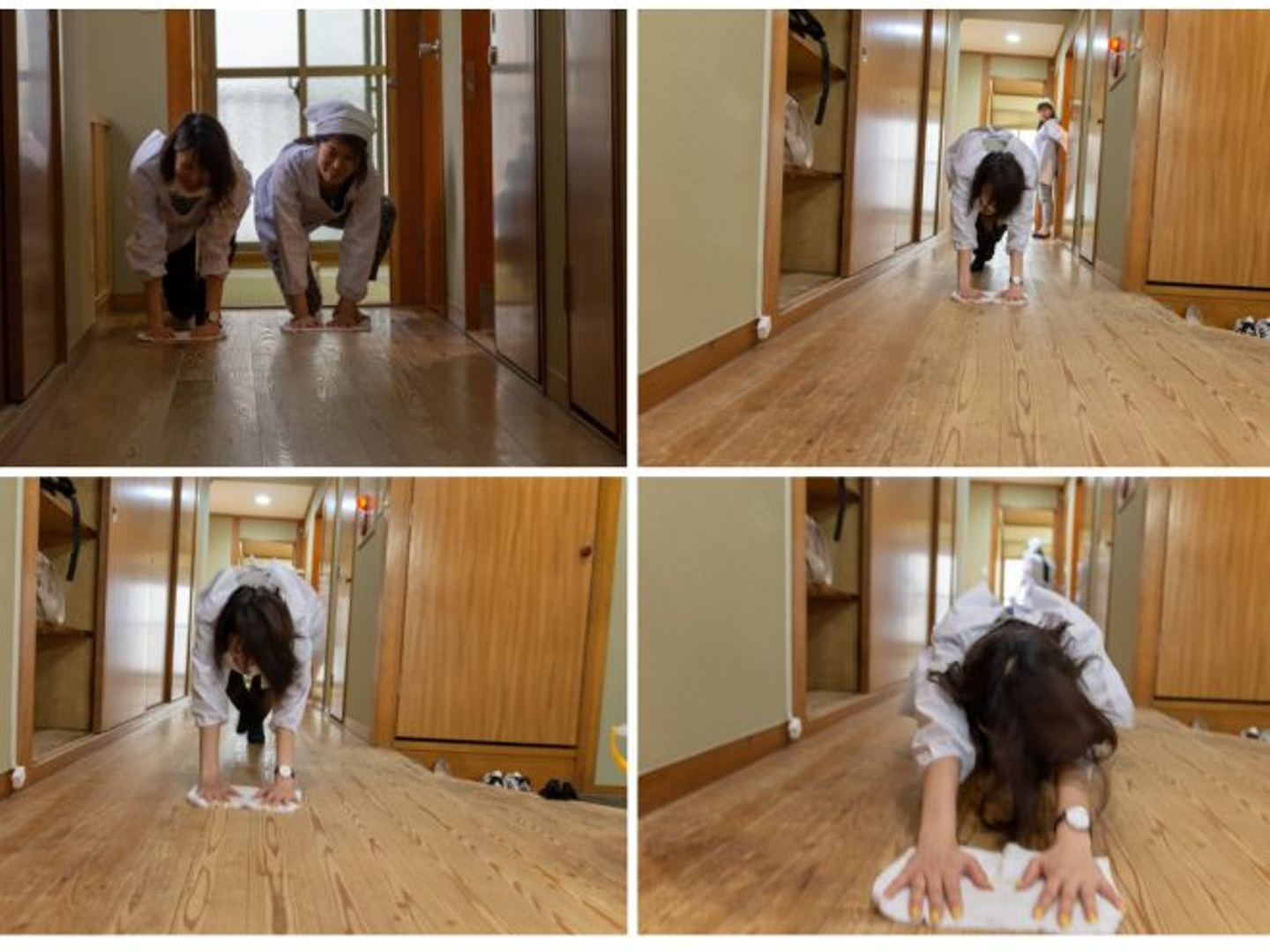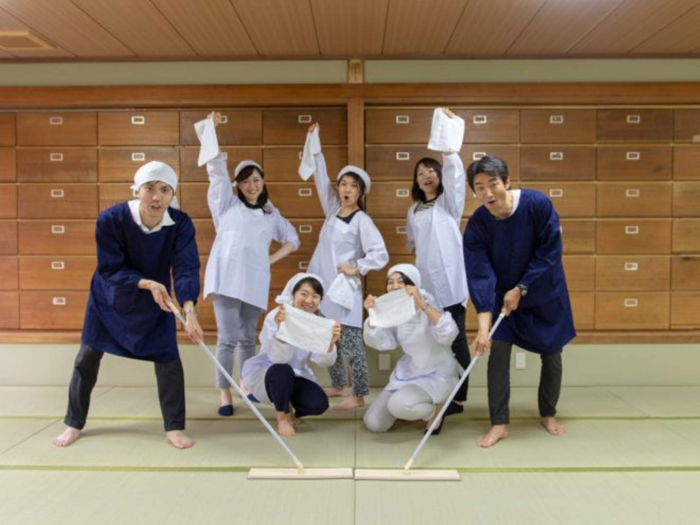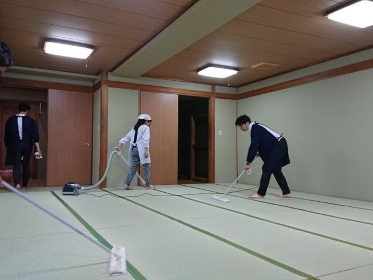 まずは男性・女性それぞれお掃除スタイルに着替えて・・