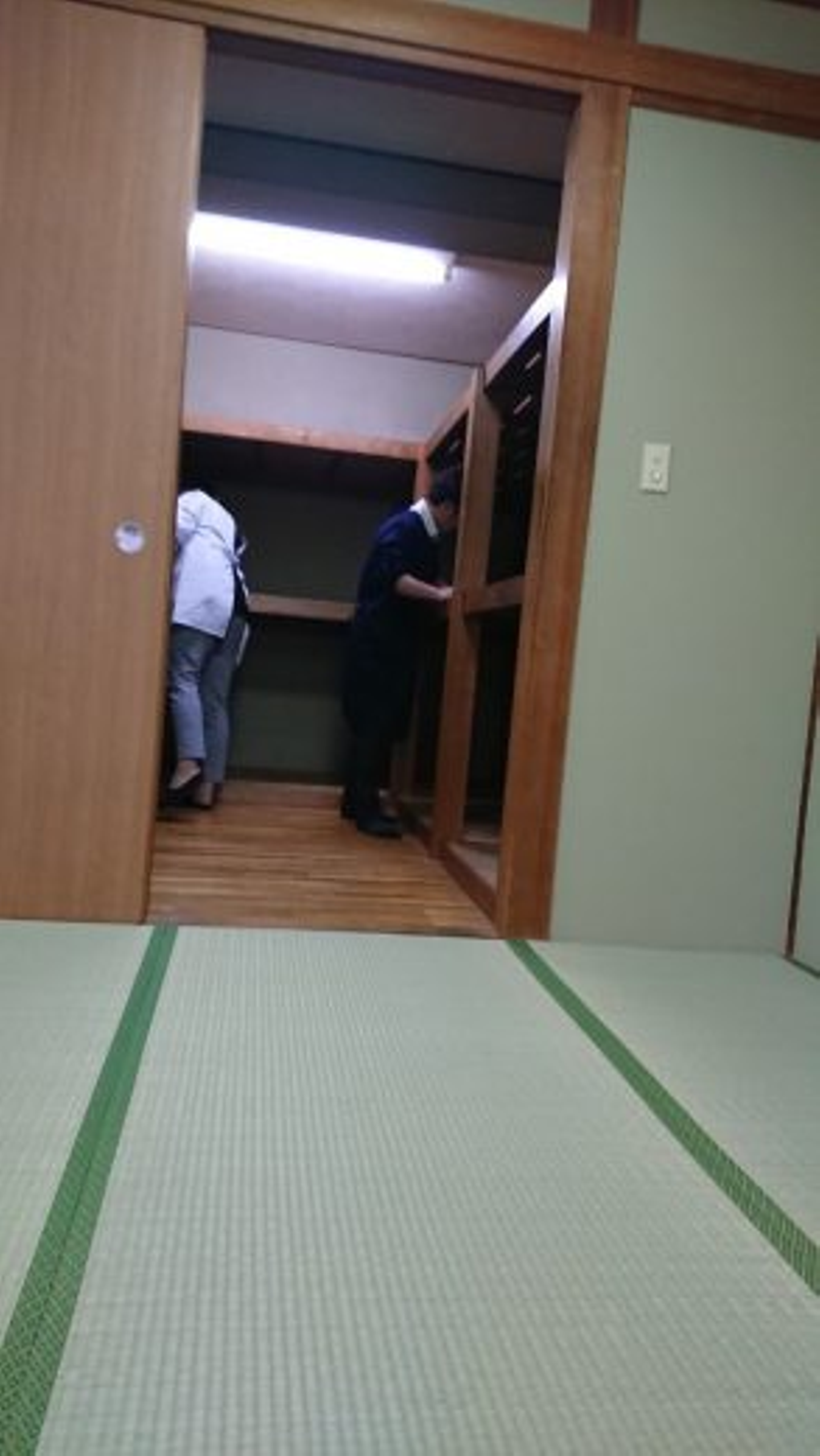 大広間の脇にある小さな部屋は力士たちの布団の収納部屋。