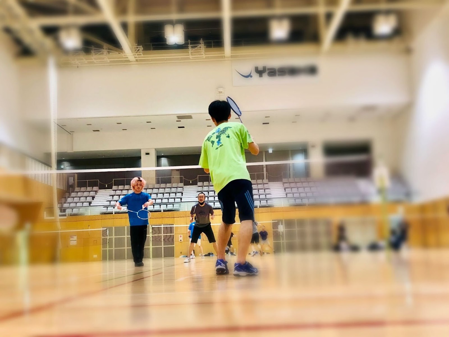 これは、社内の「バドミントン部」で終業後に集まった時の写真だそうです。