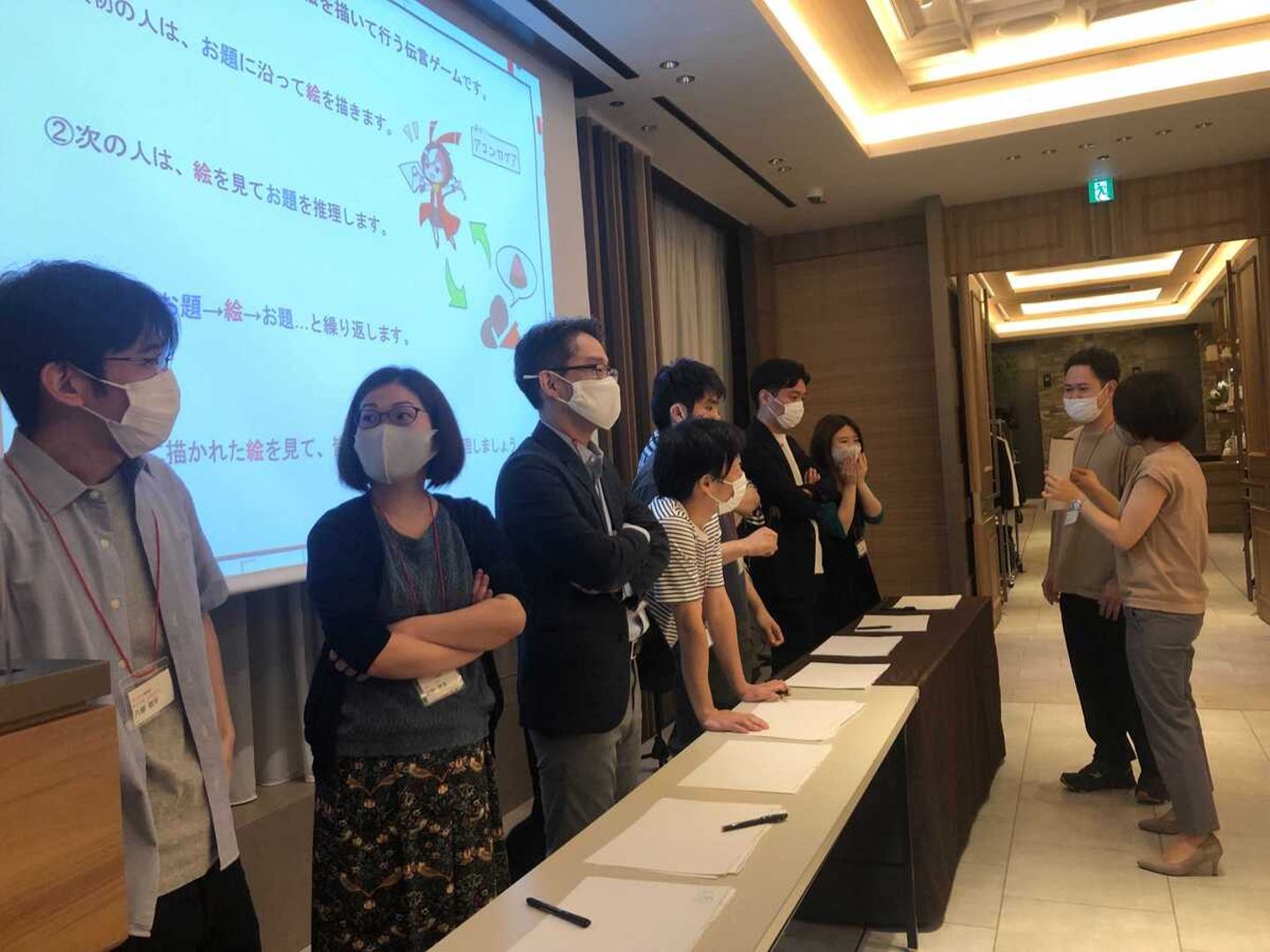 同じテーマからスタートしたのですが、伝言が進むごとにお題がゆがんで伝わって、各チームかなり苦戦していたようです。