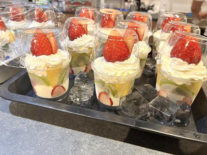 今年の屋台は、餃子やパエリア、ル―ローハン、ラムチョップなどの様々な国籍の料理から、すき焼きやもつ煮などの日本料理、スウィーツではフルーツトライフルが出店していました。