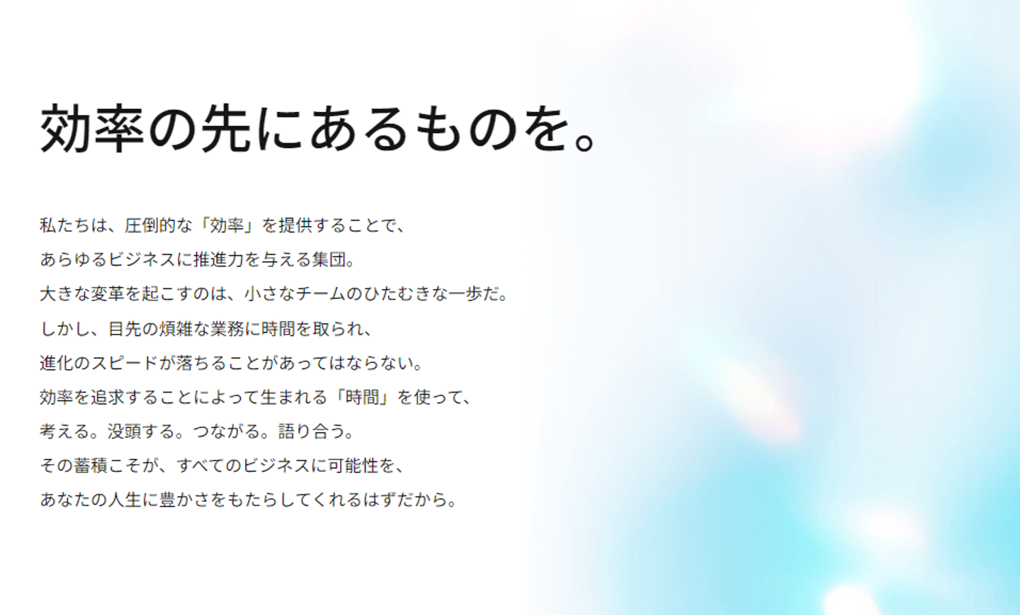 「効率の先にあるものを。」