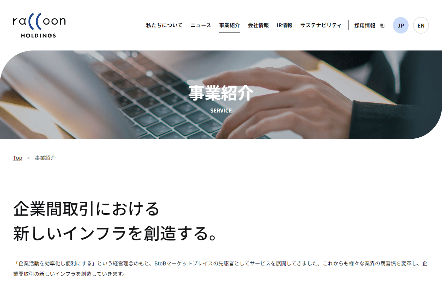 トップページでは、ラクーンの新たなタグライン&ステートメントを大きく掲げています。