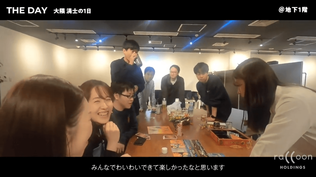 今日は19時から会社のボードゲーム部があるので、そこにあるボードゲームをして楽しもうと思います。ラクーンには他にもサークルや部活があるので、みんなでワイワイ楽しめます。 結局この日は23時ぐらいに帰りました。