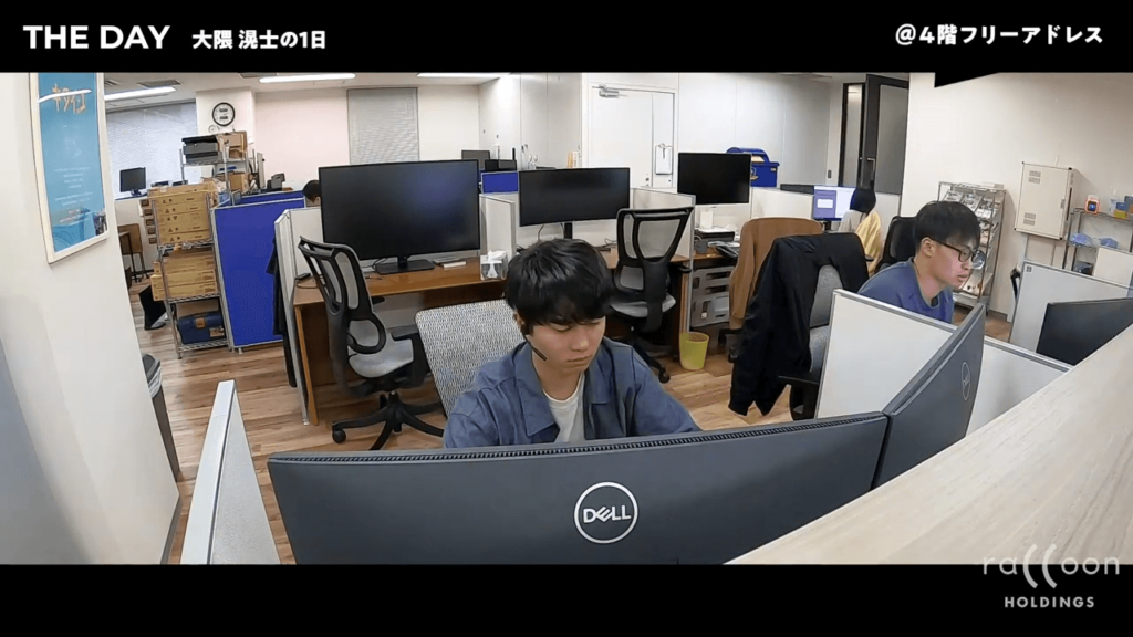 いつも9時頃に出勤しています。フリーアドレスになっていて、この密着取材のインタビューが終わった後、10時前頃に席につきました。
