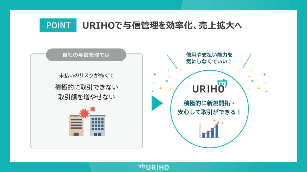 このように、与信管理の効率化と売上拡大の両面で『URIHO』をご活用いただけるかなと思っています」