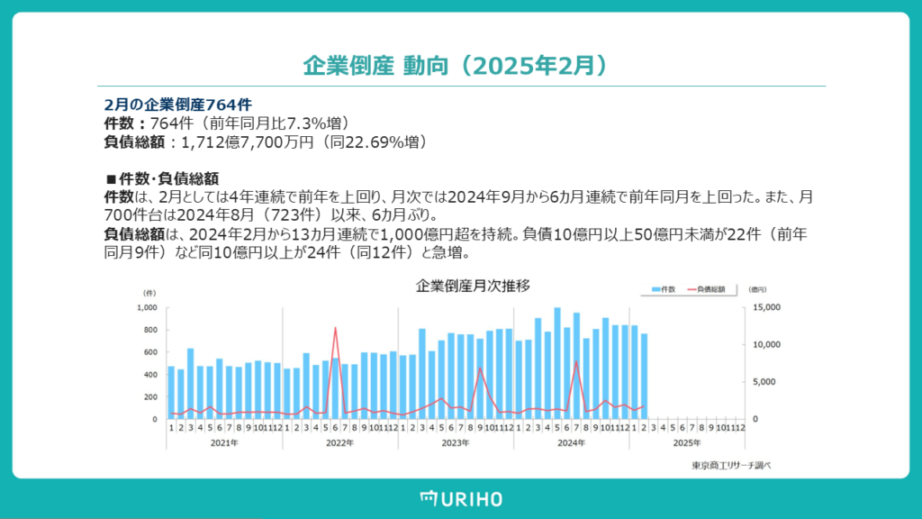 涌井「コロナ後の倒産件数は増加傾向にあります。主な要因としては、『人手不足』や『人件費の高騰』が挙げられます。特に中小・地方企業において影響が大きく、事業の継続が難しくなっているような状況です」