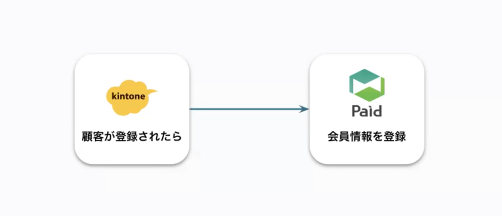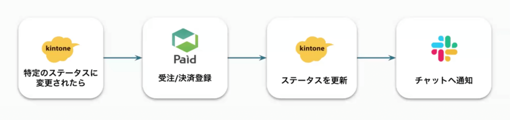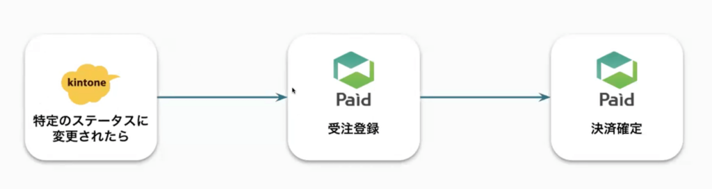 禹さん:「他にも、 『kintone』に受注情報が登録されるとその情報が『Paid』に自動連携され、『Paid』で受注登録と決済確定が実行されるというような使い方も可能です」