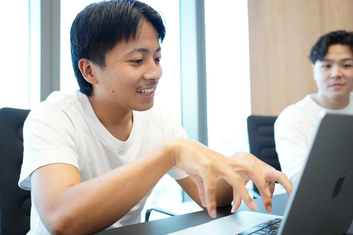 他社と比較した際に、一番成長の角度が大きい環境だと思ったからです。整備された研修制度がある企業も魅力的でしたが、僕はもっと早くから負荷がかかる環境で自分を試したかった。ワークサンプルでフィードバックをくださった新卒出身の事業開発・山根さん(現エンタープライズ事業部 Designグループ マネージャー)のように、入社数年で高いビジネス戦闘力を持っているベンチマークになる先輩がいることに惹かれました。ラクスルなら、自分が求めるスピード感で成長できると確信しました。